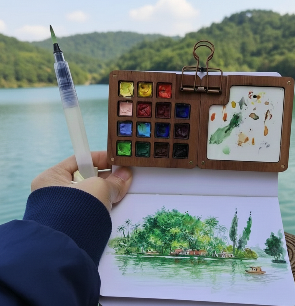 - 1x Portable Wooden Watercolor Palette (Durable, compact design).